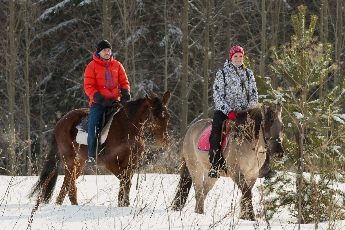 Стоимость: конная прогулка на одного (1 час) — 1400 руб.; конная прогулка в группе от двух человек (1 час) — 1000 руб. с человека.