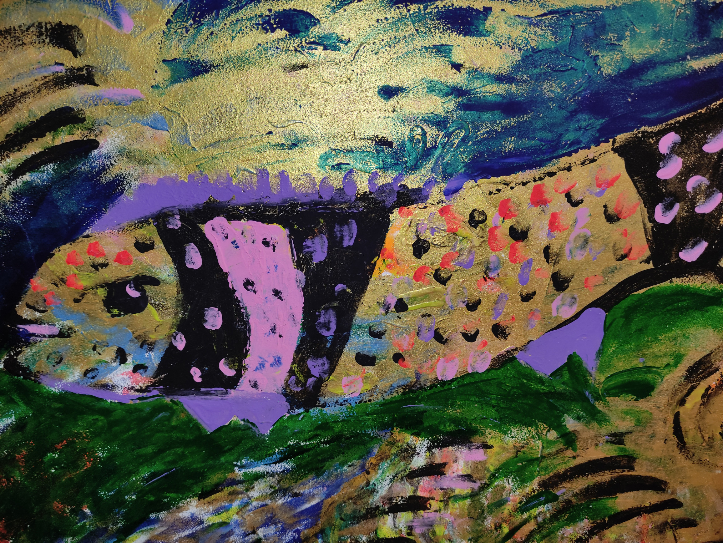 Живопись Нины Горлановой — прекрасный пример того, что для художника интеллект, культурный бэкграунд и своеобразие взгляда на мир гораздо важнее школы. Трудно найти автора, в творчестве которого было бы столько же смелости в подходе к материалу: художница пишет по несколько десятков картин в день, и ей не нужны для этого шпатели, мольберты и даже кисти — достаточно акриловых красок, любой картонки — хоть коробки от конфет, хоть обложки старого календаря — и собственных пальцев; а получаются при этом произведения яркие и содержательные.