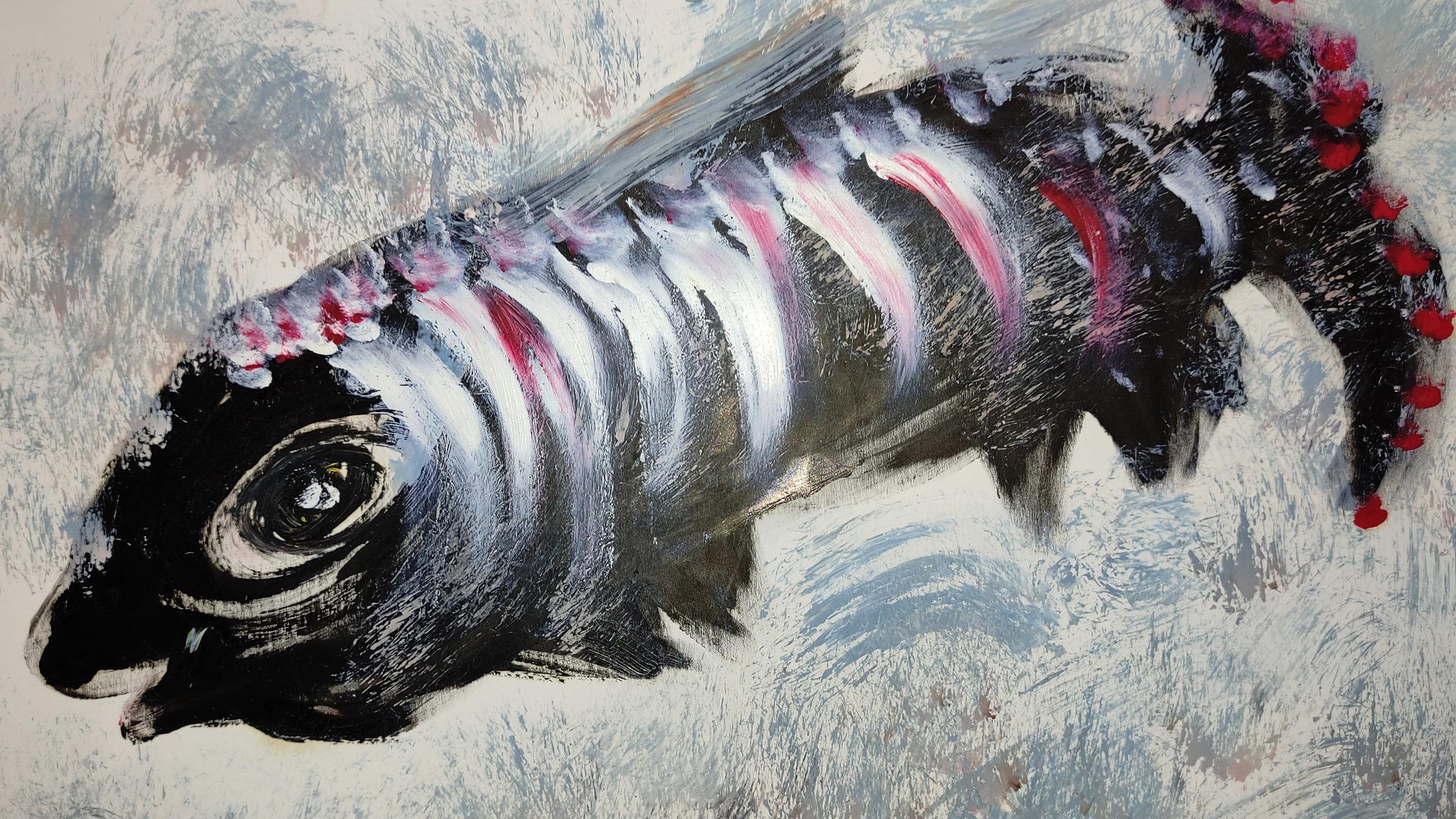 Живёт художница в очень маленькой квартире, так называемой «малосемейке», а картин у неё — тысячи, поэтому хранятся они как попало и где попало, что приводит порой к неожиданным открытиям. Вот и в этот раз художница разбирала свои работы и наткнулась на сумки, в которых были сложены картины с рыбками. Несколько сотен. Все они были переданы в Центр городской культуры — навсегда и безвозмездно, а команда Центра подготовила выставку, небольшую, но очень ёмкую.