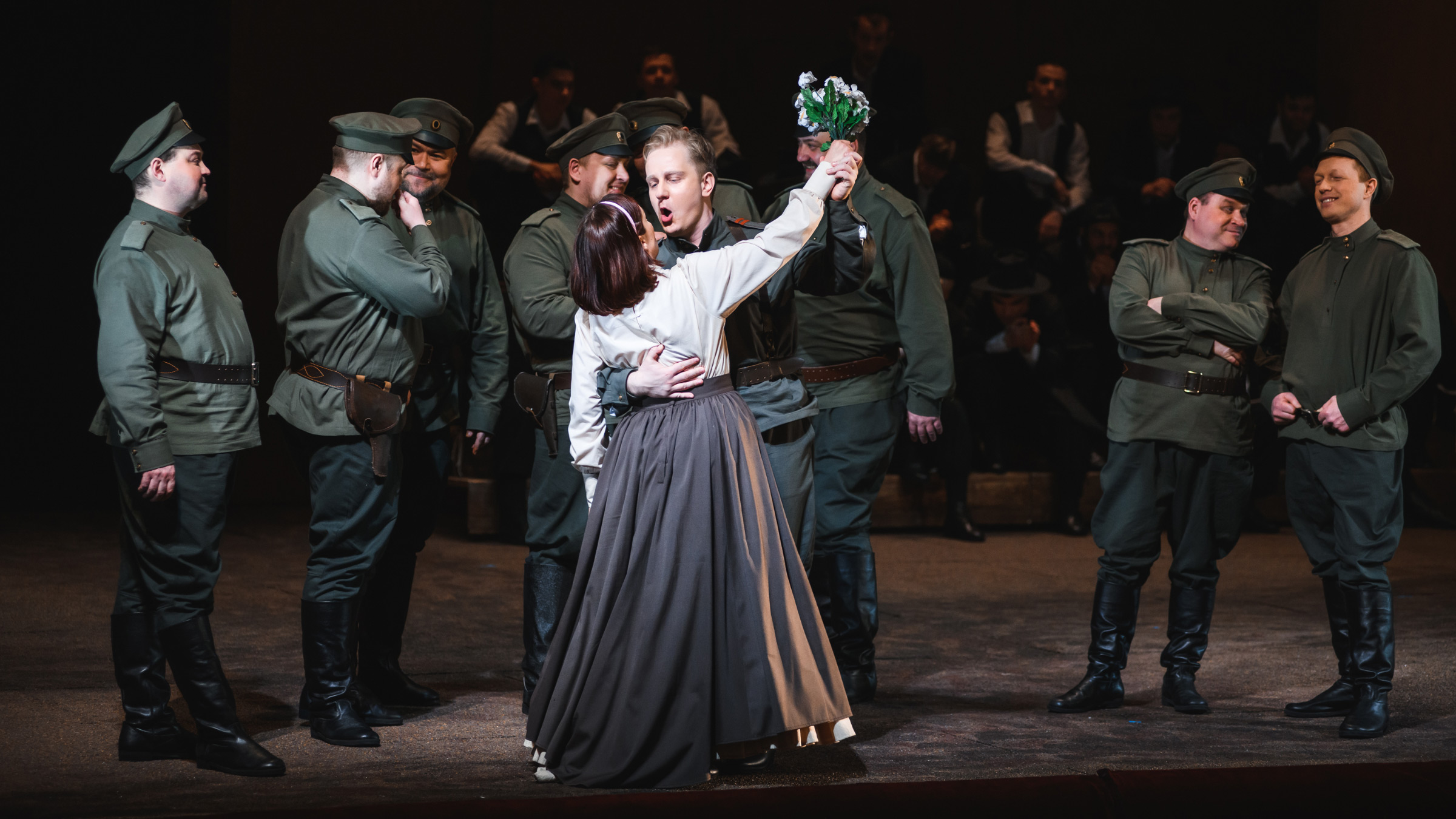 Из оперных солистов наибольшее доверие вызвал Тимофей Павленко: его роль Цуниги оказалась гораздо больше, чем в оригинале. Он вездесущ, даже роды у Кармен принимает; и поёт достойно, и комикует смешно.