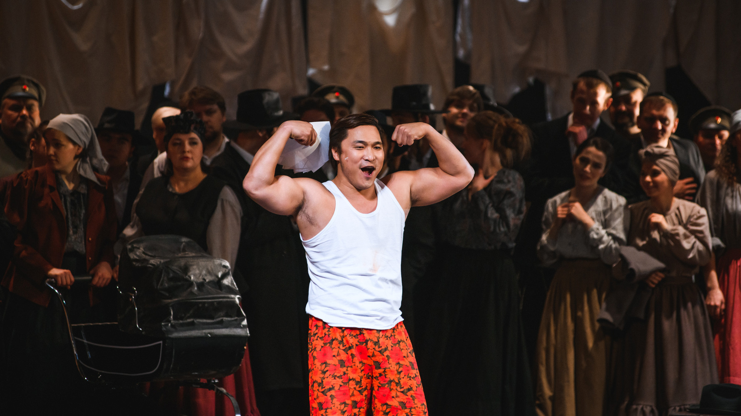 Тем более любопытно, как всё это разноголосье и разностилье смонтировал оркестр под управлением Филиппа Чижевского. Это, конечно, виртуозная работа: так, сразу после «На Богатяновской открылася пивная» раздаются куплеты тореадора — мгновенно, без малейшего перехода, будто так и должно быть; зрителей к этому моменту готовит балет — танец с полупародийными элементами фламенко, а оркестр врубается мгновенно и очень эффектно.