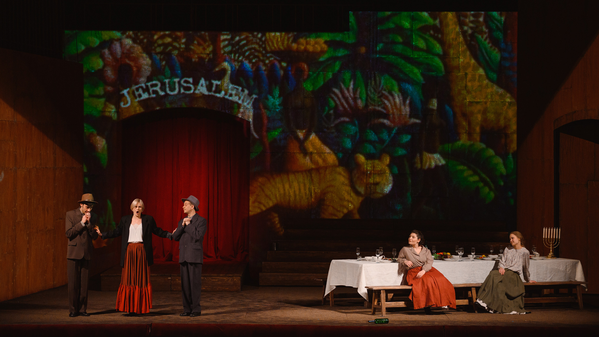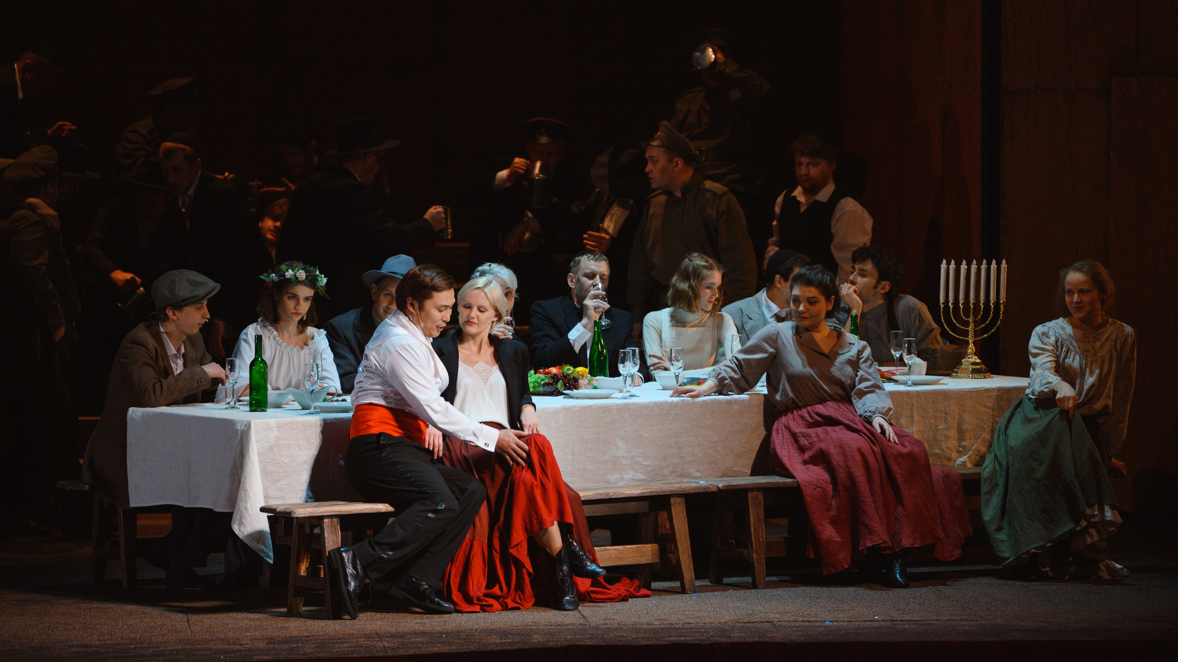 Что-то в этом есть. Когда с первыми музыкальными тактами зритель встречается с интересной хореографией, это подкупает; а хореография интересная: на сцене евреи танцуют фрейлехс, но танцуют по-балетному изысканно. Алексей Расторгуев из «Балета Евгения Панфилова» сделал этот эпизод в меру этническим, в меру характерным и очень небанальным.