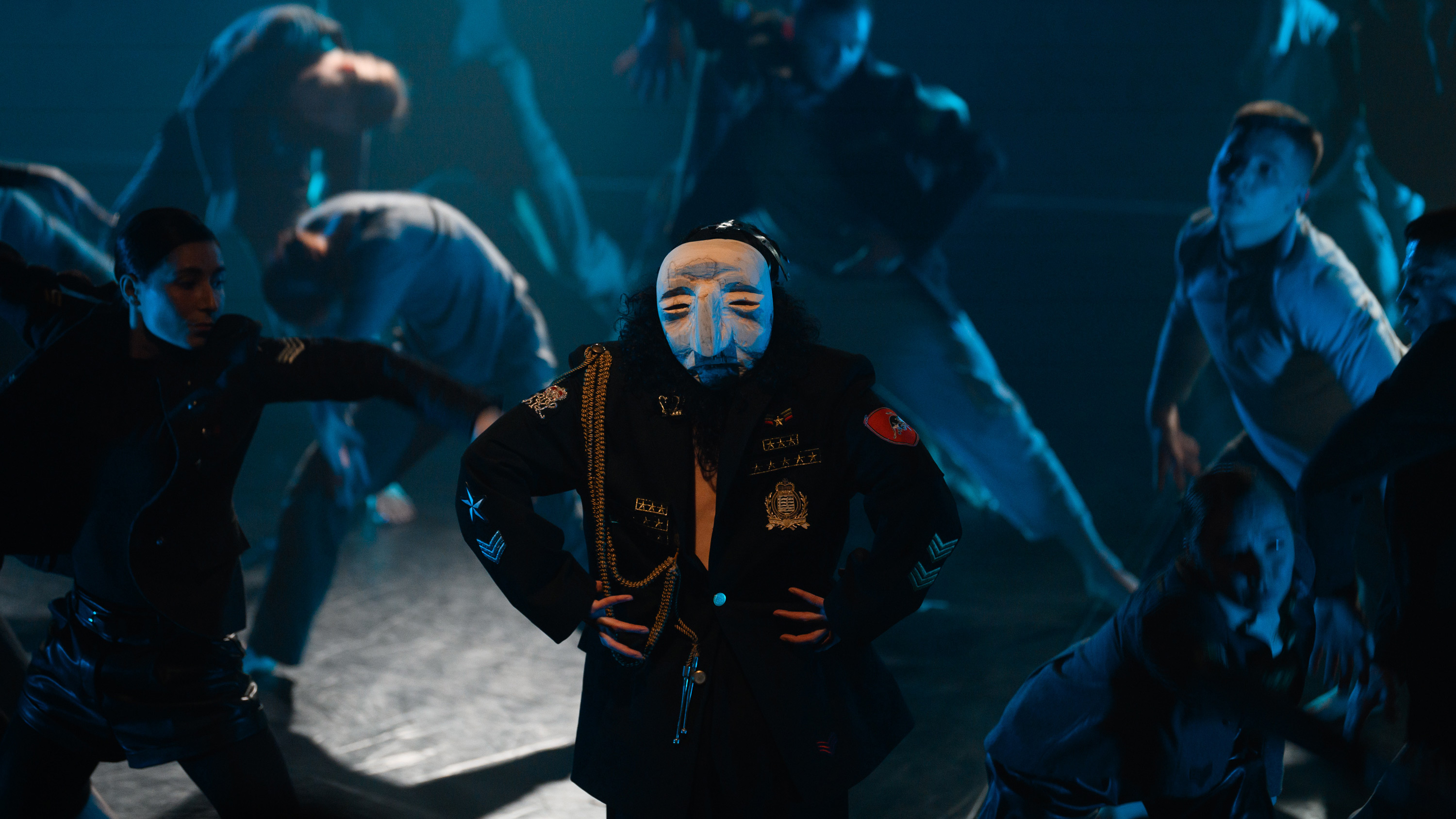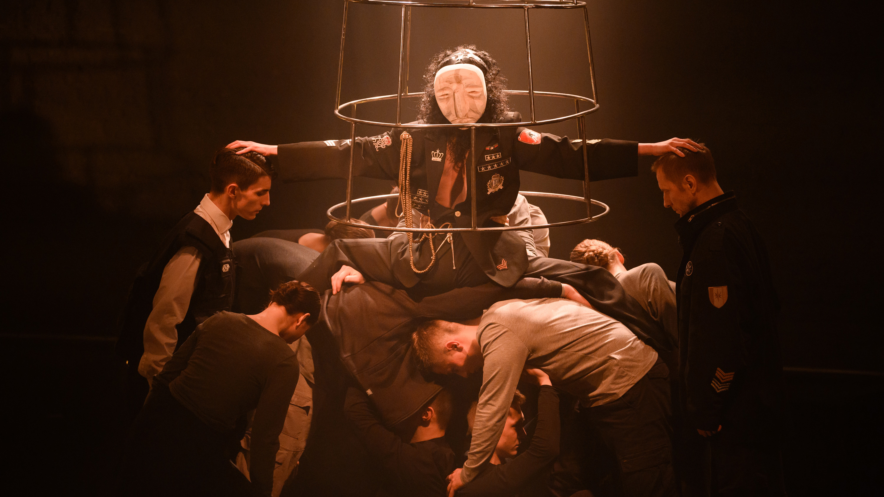 Это кульминация спектакля — момент прозрения Лира, момент обретения им собственного лица, цельности, отказ от личины в пользу личности. До этого момента Мария Тихонова танцует в маске, причём маска надета на затылок, и герой — еще неопределённой гендерной принадлежности — к зрителям повёрнут как бы лицом, но на деле — спиной; постепенно проникаясь трагизмом, король отказывается от маски, становится женщиной и обращается к людям лицом.