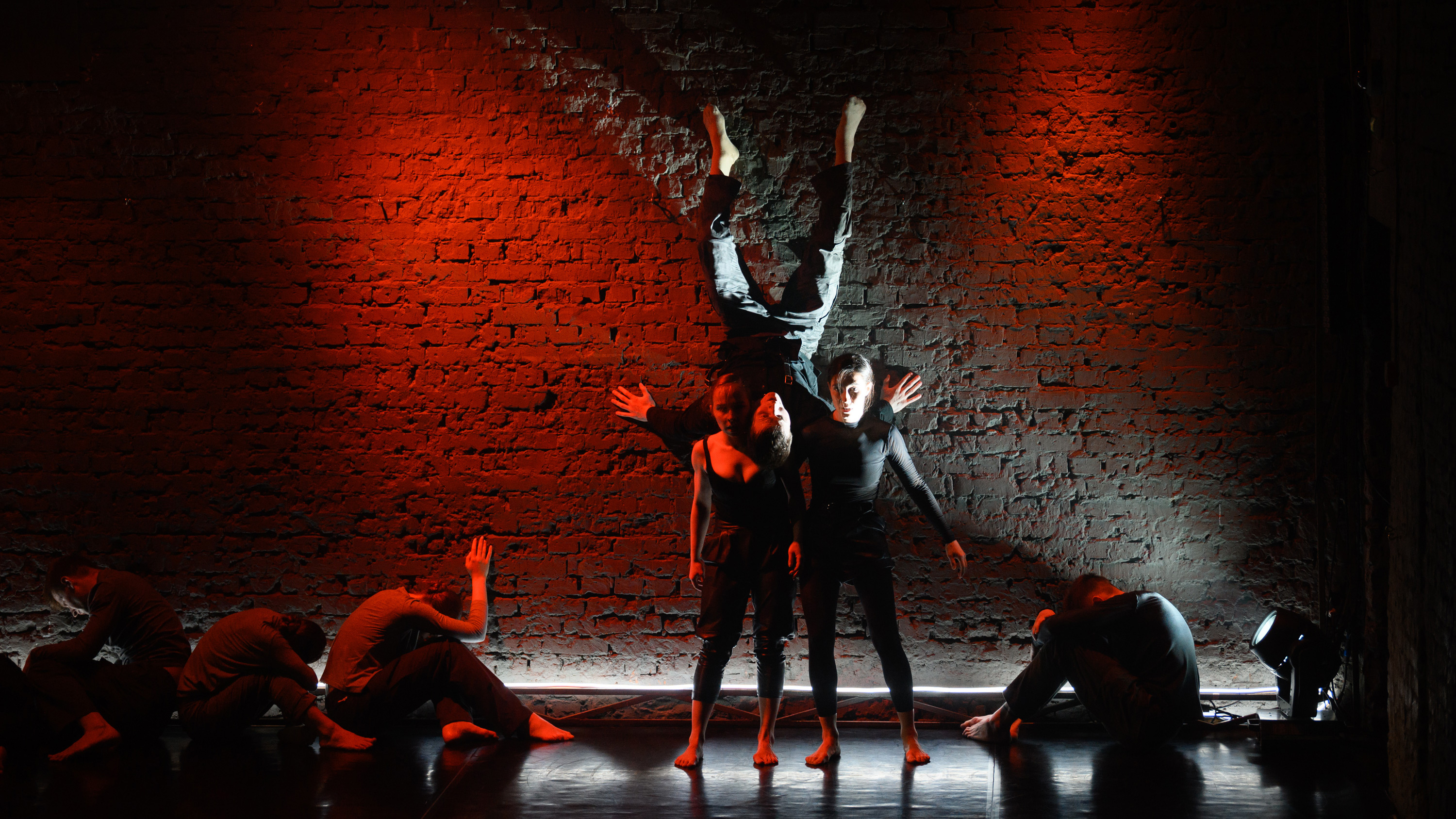 Да, они там поют, а ещё разговаривают. Это, конечно, не балет, а Ксения Малинина даже определение «пластический спектакль» не принимает, называя «Лир» примером «физического театра». Много сил и времени постановщица потратила на объяснения публике, что же это за театр такой. Относя своё творчество к «физическому театру», Ксения сознательно расширяет свои возможности: в «ассортименте» её хореографических приёмов — и уличные танцы, и акробатика, и взаимодействие танцовщиков с видео. Опыт многолетней работы с непрофессиональными исполнителями дал постановщице бесценный навык: каждому из героев прописана движенческая партитура ровно той сложности, которую танцовщик способен выполнить. Опытным и профессиональным Ульяне Букиной (Гонерилья) и Анастасии Тиуновой (Регана) досталось в полной мере; очень точным получился жёсткий, суховатый Глостер (Георгий Фадин), но настоящим открытием стал исполнитель роли Эдмунда Артём Рудаков.