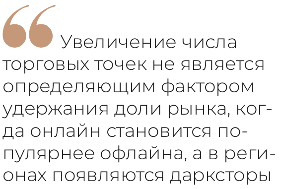 Ещё один вызов для менее крупных игроков на рынке — это увеличение доли экономсегмента. «В конкуренции за цену продукта преимущество у крупнейших игроков, — отмечает доцент департамента менеджмента НИУ ВШЭ — Пермь Дмитрий Гергерт. — Именно они могут закупать большими объёмами, их возможности позволяют навязывать поставщикам и производителям свои условия — от отсрочек платежей до особых условий поставок и промоакций».