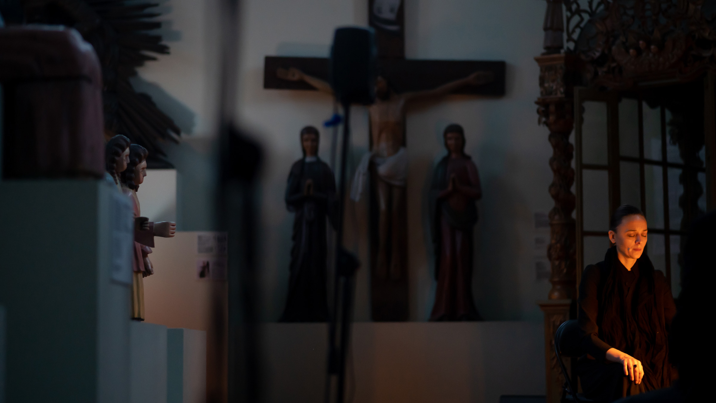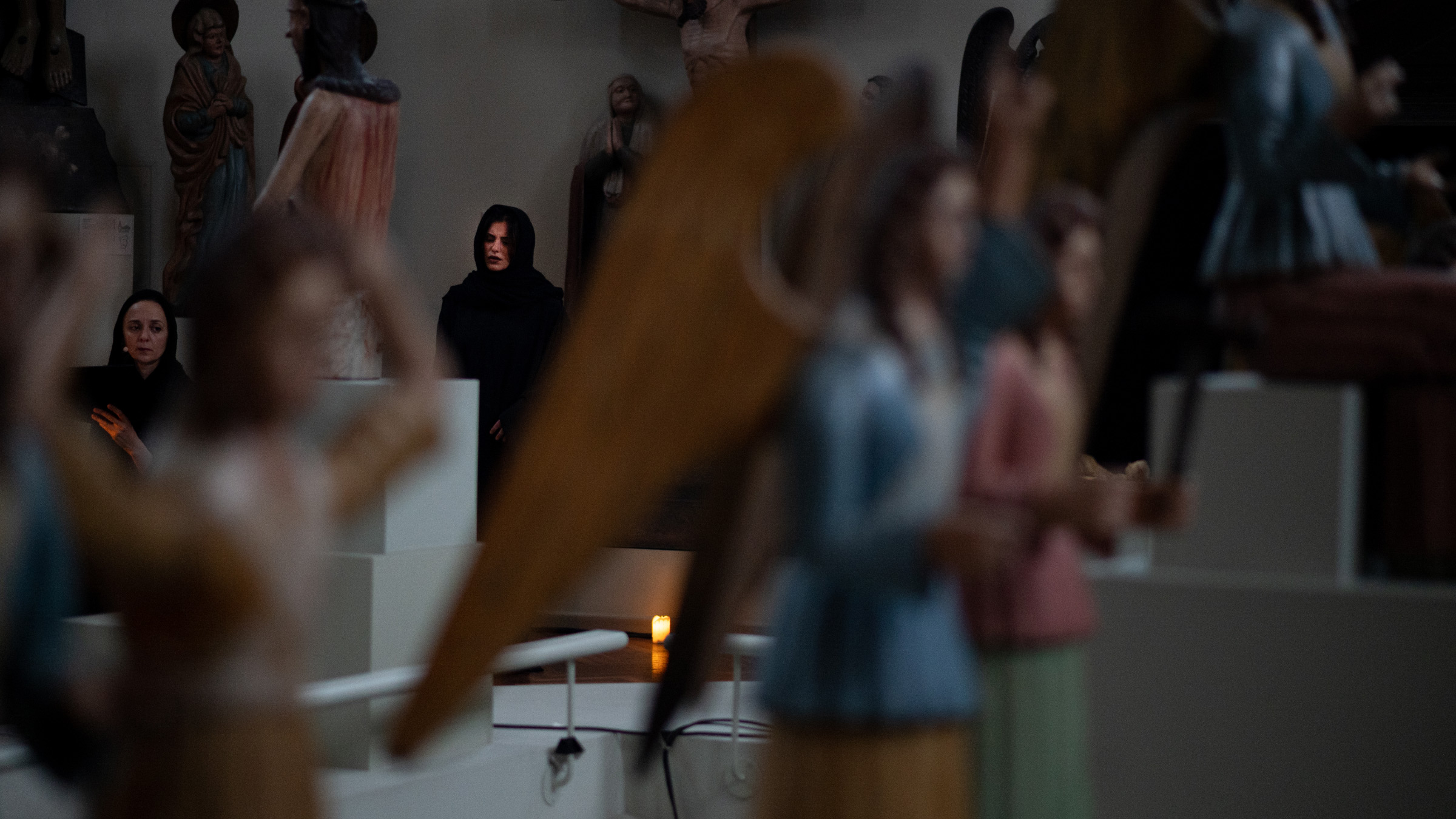 Зовут эту певицу Рибале Вехбе, она из Ливана, в хоре MusicAeterna выступает в качестве приглашённой солистки. Наверное, этот голос — одно из главных впечатлений нынешнего фестиваля. Впрочем, имя певицы, равно как и имена чтиц, слушатели «Псалмов» не узнали. Если в былые годы после окончания «энигмы» зрителям выдавали программки, то сейчас это уже не обязательно. Главное — погрузиться в атмосферу, а что исполнялось и кто это исполнял — какая разница?