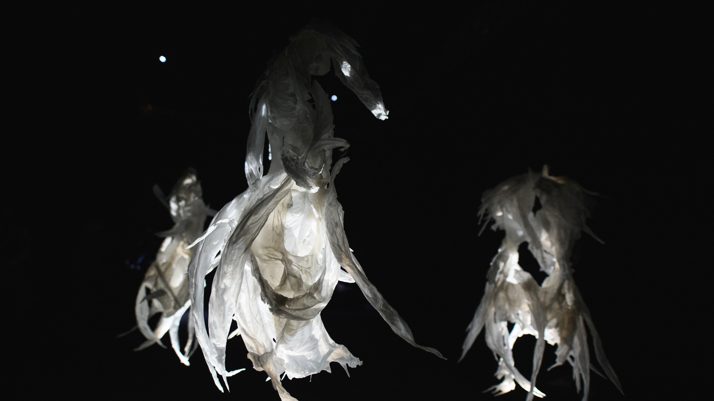 В четырёх комнатах, через которые проходят зрители перформанса, разместились модифицированные люди: люди, живущие в специальном растворе; люди, полностью покрытые слизью; люди, чьи тела деформированы многочисленными наростами; люди, покрытые какими-то раковинами вроде мидий или густой сияющей бахромой… Это удивительно, причудливо и очень чувственно. Перформеры прекрасны и профессиональны, их тела юны и привлекательны, а удивительные костюмы сделаны исключительно из синтетических материалов: пластик, пластик… Эти сказочные костюмы неудержимо хочется потрогать, не зря перед началом представления особо предупреждают, что делать этого нельзя.