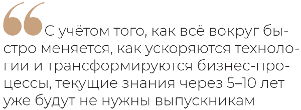 Рынок труда меняется очень быстро, а образование — медленнее, соглашается Дмитрий Гергерт. По его мнению, выбирая сегодня «модную» специальность, через четыре года можно оказаться в ситуации, когда специалист уже не будет востребован.