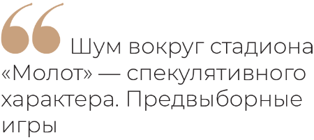 Вообще весь этот шум вокруг стадиона — спекулятивного характера. Предвыборные игры. Мне кажется, всё затихнет в сентябре.