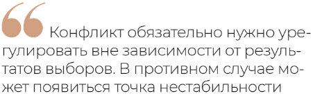 Конфликт обязательно нужно урегулировать вне зависимости от результатов выборов, соглашается екатеринбургский политолог Александр Белоусов. По его словам, все стороны должны сесть за стол переговоров и договориться. В противном случае может появиться точка нестабильности. «А как они дальше будут функционировать? — рассуждает он. — Как будут принимать бюджет, заслушивать отчёты главы? Ситуация, когда корпоративный конфликт вышел в публичную плоскость, в целом для страны не типичная».