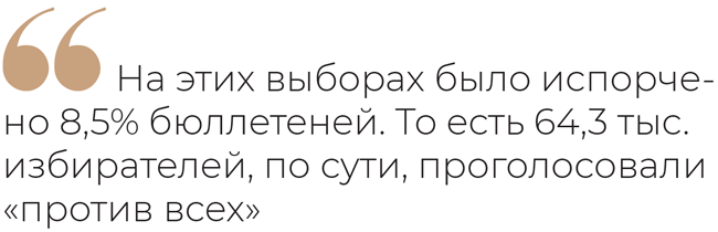 О том, что протестные настроения в обществе заметно выросли, говорит и Юрий Исаев. Они выразились в большой явке и социальной напряжённости. Кстати, для справки: помимо голосования за новые лица на этих выборах было испорчено 8,5% бюллетеней. То есть 64,3 тыс. избирателей, по сути, проголосовали «против всех». Это плюсом к тому протесту, который выразился в уровне поддержки КПРФ и «Новых людей». Для сравнения: в 2016 году было 6,17%. Несмотря на потоки грязи и негатива, которыми поливали друг друга противоборствующие лагеря и которые побудили многих избирателей пожелать «чумы на оба ваших дома».