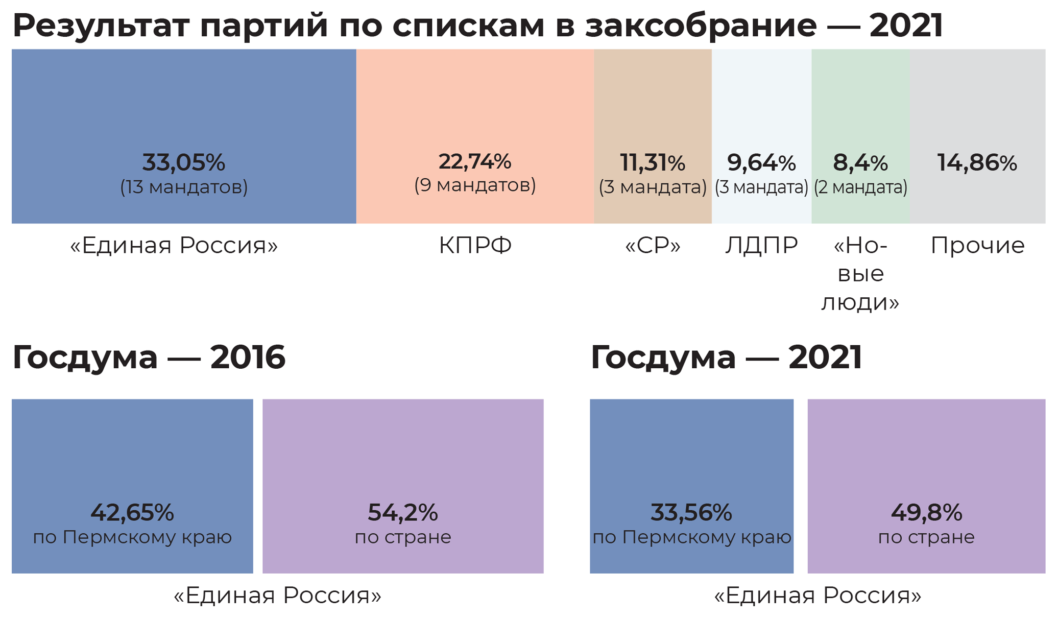 Главной сенсацией этих выборов на всех уровнях стало прохождение в парламенты не четырёх партий, как в предыдущие годы, а пяти. Пятипроцентный барьер неожиданно преодолели «Новые люди», гарантировав себе места в Госдуме, Законодательном собрании и городской думе Перми.