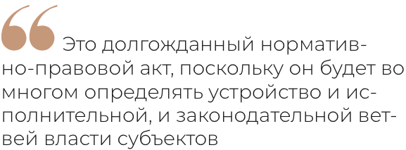 — Это долгожданный нормативно-правовой акт, поскольку он будет во многом определять устройство и исполнительной, и законодательной ветвей власти субъектов. На заседании был высказан ряд поправок и предложений к законопроекту. Замечательно, что депутаты Госдумы, которые являются инициаторами этого проекта, нас выслушали. Надеюсь, что наши предложения помогут принять качественный нормативно-правовой акт. Мы рассчитываем на такое же обсуждение нового закона о местном самоуправлении. Это то базовое, что будет регулировать власть на местах. От этого напрямую зависит уровень жизни и благосостояния наших граждан.