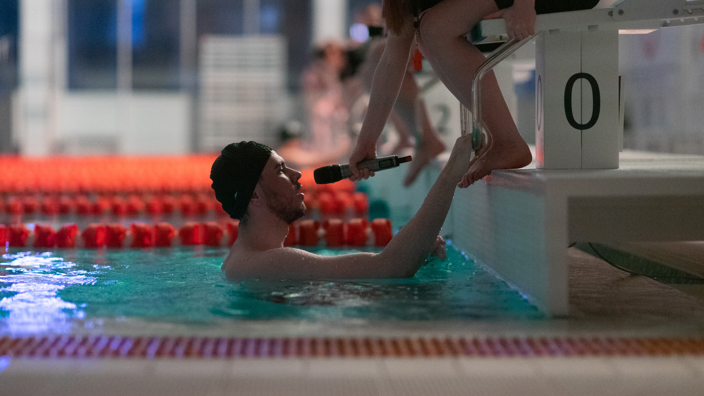 Всё, казалось бы, очень просто. На двух концах каждой дорожки 50-метрового бассейна стоят красивые перформеры в чёрных купальных костюмах. С одной стороны — пловцы, с другой — люди с микрофонами. В разной последовательности, разными техниками, с почти балетной грацией (балетмейстер — Лера Медведева) пловцы проделывают путь до противоположной стороны бассейна, где дышат в микрофон. Вспоминается песня группы «Наутилус Помпилиус» «Дыхание» — она сюда очень подходит.