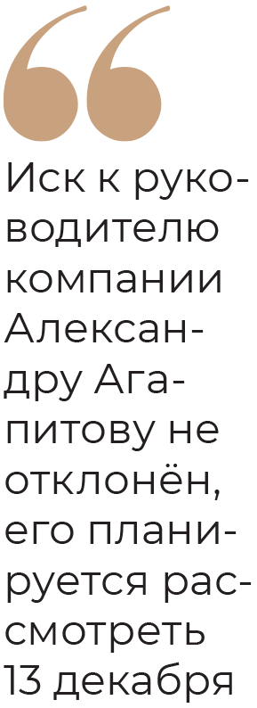 При этом иск к руководителю компании Александру Агапитову не отклонён. Согласно данным из картотеки суда, его планируется рассмотреть 13 декабря. По словам Ильи Дёмина, процессуальных решений по данному иску пока не принято.