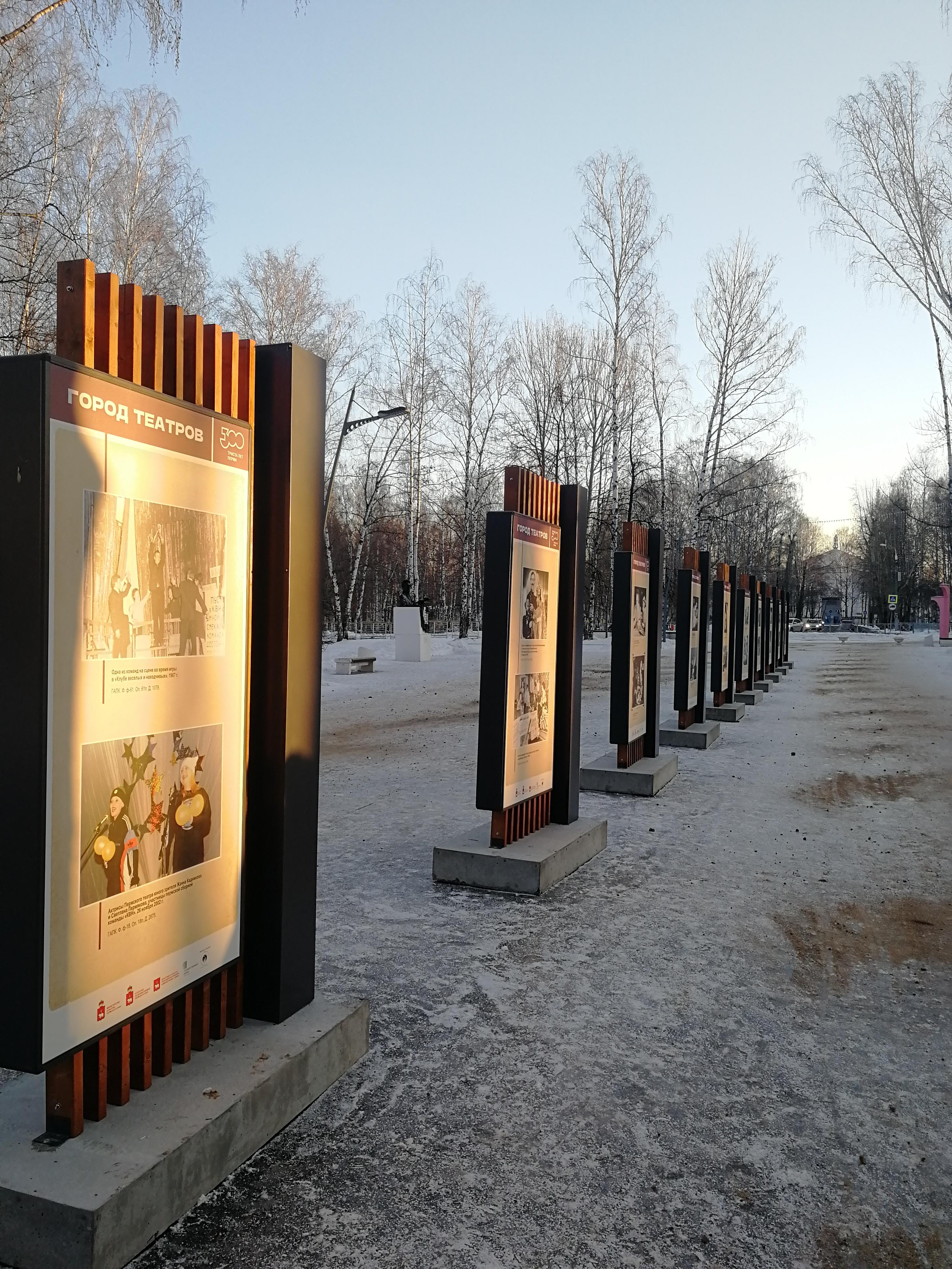 Ежедневно на пяти площадках — на городской эспланаде, в парке им. А. П. Чехова, в саду им. В. Л. Миндовского, в скверах у ДК им. С. М. Кирова и ДК им. М. И. Калинина — работают уличные выставки из фондов Государственного архива Пермского края в рамках проекта Центрального выставочного зала «Музей под открытым небом». Проект включает пять самостоятельных выставок: «Город детей», «Город Камы», «Город заводов», «Город театров» и «Город людей» (0+).