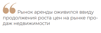 Рынок аренды оживился ввиду продолжения роста цен на рынке продаж недвижимости. Рост цен и ставок по ипотеке, нестабильная экономическая ситуация и закредитованность населения — основные факторы роста спроса на аренду жилья, соглашаются аналитики PAN City Group.