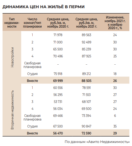 В Перми на рынке новостроек цены поднялись на 26% (до 88 505 руб./кв. м) и на 29% — на вторичном рынке (до 72 590 руб./кв. м).
