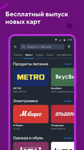 Приложение, которое позволит сэкономить на покупках. Принцип простой: пластиковые карточки сканируются камерой мобильного телефона и добавляются в виртуальный кошелёк. Приложение позволяет выпускать онлайн дисконтные карты магазинов, генерирует выгодные скидки рядом с вами. Можно не носить с собой большой кошелёк с картами. Достаточно открыть приложение, пролистать до нужной и показать данные продавцу. Зная, что у вас есть «Кошелёк», пользоваться лояльностью магазинов становится значительно проще.