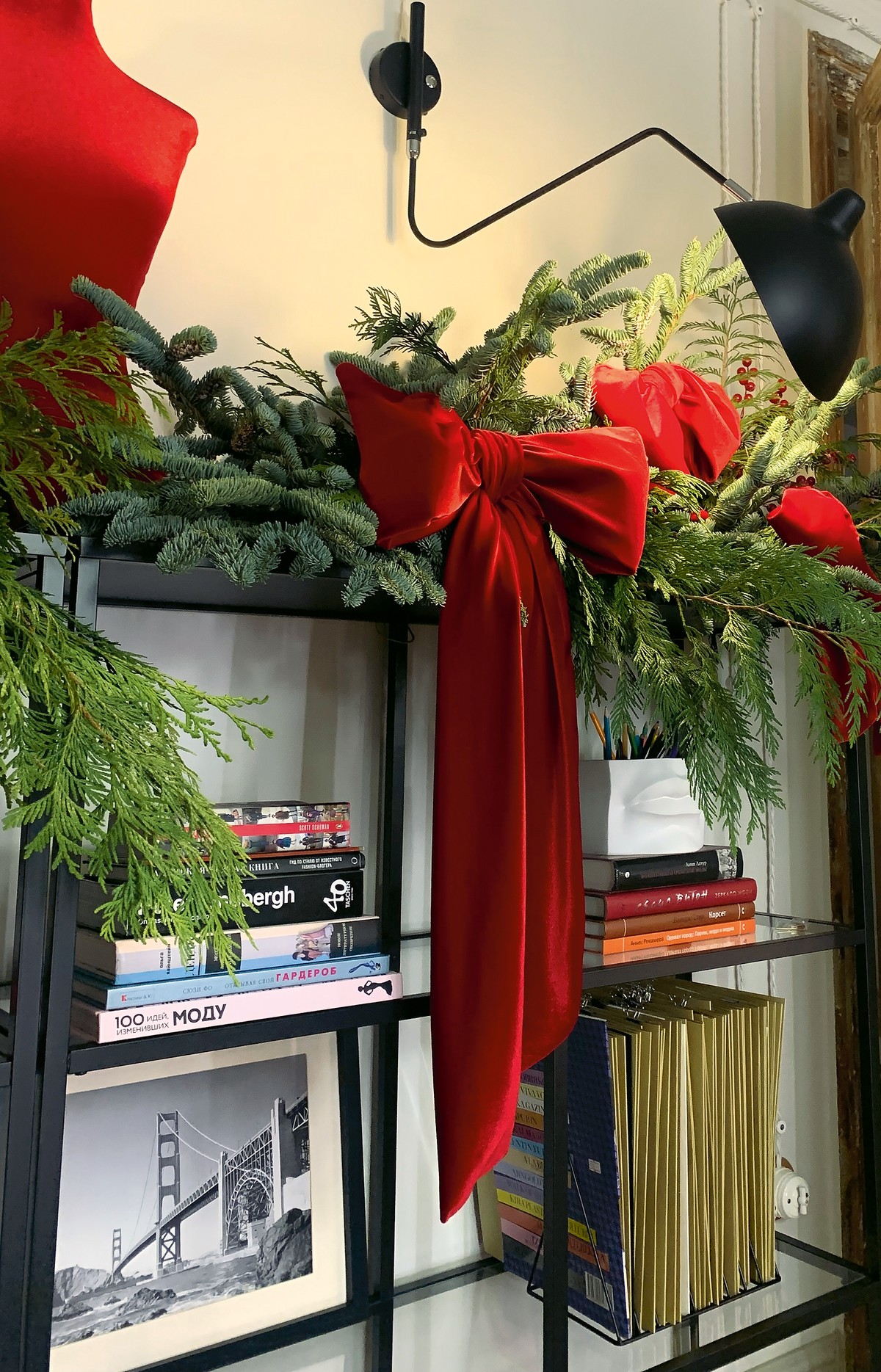 Для меня идеальный вариант новогоднего декора — рождественский венок. Он должен быть максимально натуральным, состоящим из лап живой хвои и фактурных веток, с добавлением шишек и лент из натуральных тканей. Создавая венок и любую другую новогоднюю композицию, важно полагаться на ощущение пространства. Постарайтесь сформулировать для себя, каким вы хотите видеть свой дом, оцените его геометрию и атмосферу, присмотритесь к деталям. Я всегда внимательно изучаю интерьер, в котором предстоит создавать декор. Важно, чтобы композиция стала его гармоничной составляющей, чтобы не вызывала ощущение инородности.