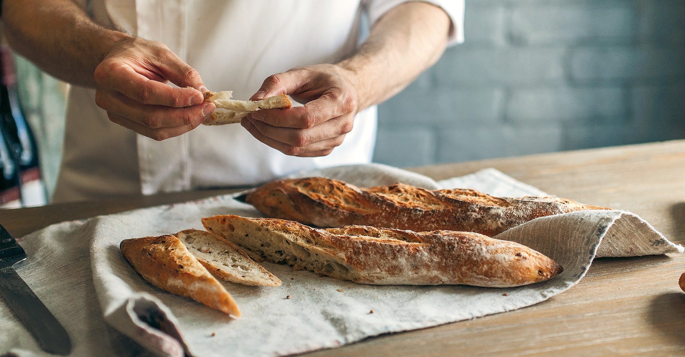 Багет — истинно королевское величие: простота и элегантность формы в сочетании с изысканным вкусом и ароматом. Я выбрал багет в качестве новогоднего хлеба по двум причинам. Первая — символизм этого хлеба. На рубеже XIX—XX веков багет был символом богатства. Его могли позволить себе только зажиточные горожане. Почему бы этому хлебу не символизировать достаток? Вторая причина — функциональность. Багет — базовый, подходящий для множества вкусовых сочетаний хлеб. Его мягкая пшеничная ароматика и сливочность прекрасно подходят и под икру, и под брускетты, и под вино. Багет удовлетворит все сочетания. Это лучший хлеб на вашем столе, сделать который проще, чем пожарить яичницу.