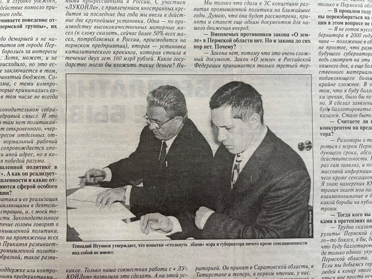 Политологи, журналисты и прочие наблюдатели всё чаще отмечают скрытый конфликт между главой Перми Юрием Трутневым и губернатором Геннадием Игумновым. Начавшись со споров о распределении бюджетных средств (главный донор областного бюджета Пермь была на 39-м месте по бюджетной обеспеченности из 40 территорий), разногласия всё увеличивались, хотя оба политика в паблике твёрдо отвергали наличие каких-то конфликтов. Фигуры влияния стремятся обозначить свои предпочтения на губернаторских выборах, которые предстоят в 2000 году. Например, вице-губернатор Дмитрий Самойлов заявляет: «Только Игумнова вижу губернатором области». Обозначают свои позиции и представители бизнеса.