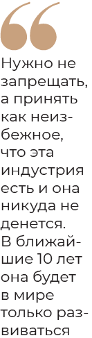 «Я в этом плане оптимист. Думаю, что всё будет не суперлиберально и разрешено, но хотя бы так. Пусть будет создан какой-то специальный орган (или подразделение внутри существующих), который лицензирует, контролирует, собирает налоги с этого бизнеса. Это привлечёт больше людей и капитала. Все от этого выиграют: и индустрия в целом, и люди, и в конечном счёте страна», — надеется Харипов.