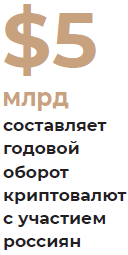 На прошедшей в конце февраля пресс-конференции директор департамента финансовой стабильности ЦБ РФ Елизавета Данилова сообщила, что годовой оборот криптовалют с участием россиян составляет около $5 млрд. 11,23% вычислительных мощностей, используемых для майнинга биткоина, в августе 2021 года приходилось на Россию. Это третье место в мире после США и Казахстана. Спикер предупредила граждан о рисках, связанных с потерей средств, поскольку «рост криптовалют обусловлен спекулятивными факторами».