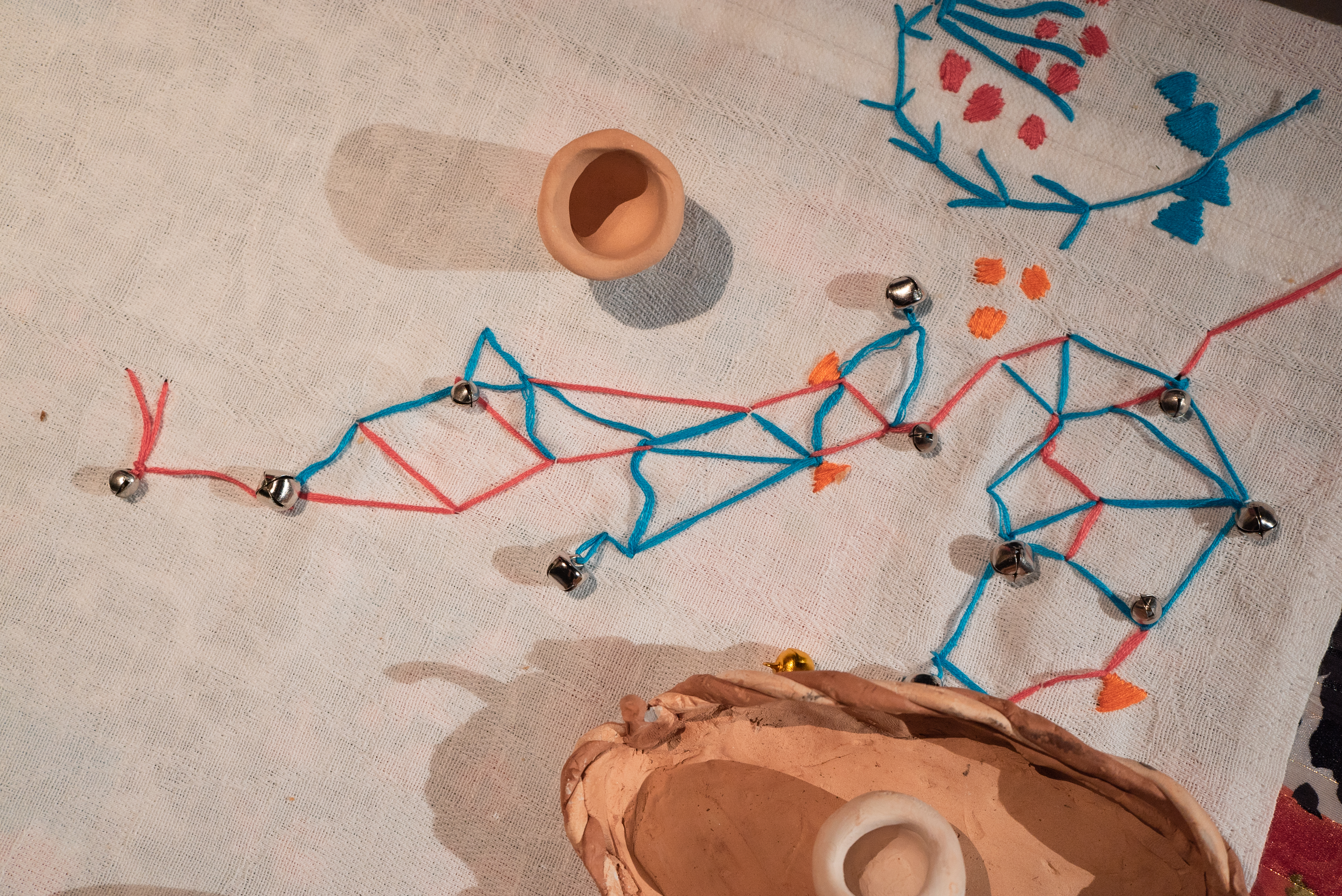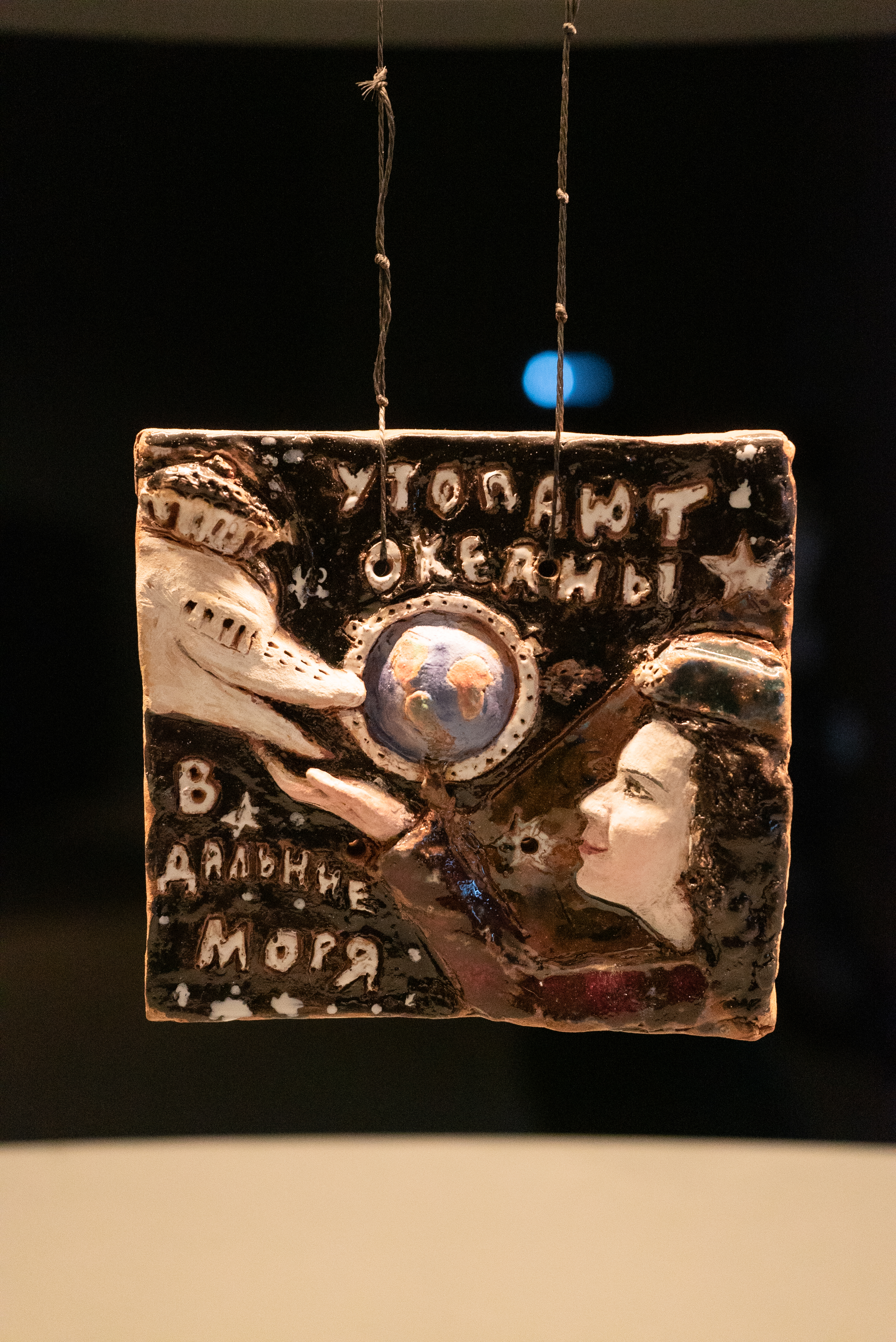 Алиса Савицкая характеризует экспозицию как «тонкое, сложное переплетение художественных стратегий». Можно было бы остановиться после слова «переплетение»: рукотворность, рукодельность — важное качество экспонатов, особенно тех, что создают художники из группы «Дальневосточные разлучницы» (ДВР). Женское рукоделие — их фишка: бисероплетение, шитьё, вязание. Эти архаичные техники применяются здесь для очень авангардных высказываний: так, созданная в технике пэчворк работа «Забайкальские дыры» художницы из ДВР Насти Маляры — это чувственный образ травмы, вызванной детскими переживаниями по поводу переезда из родных мест, а другой арт-объект — вязаная шаль, вмурованная в бетонный куб, — создаёт многослойную и многозначительную метафору.