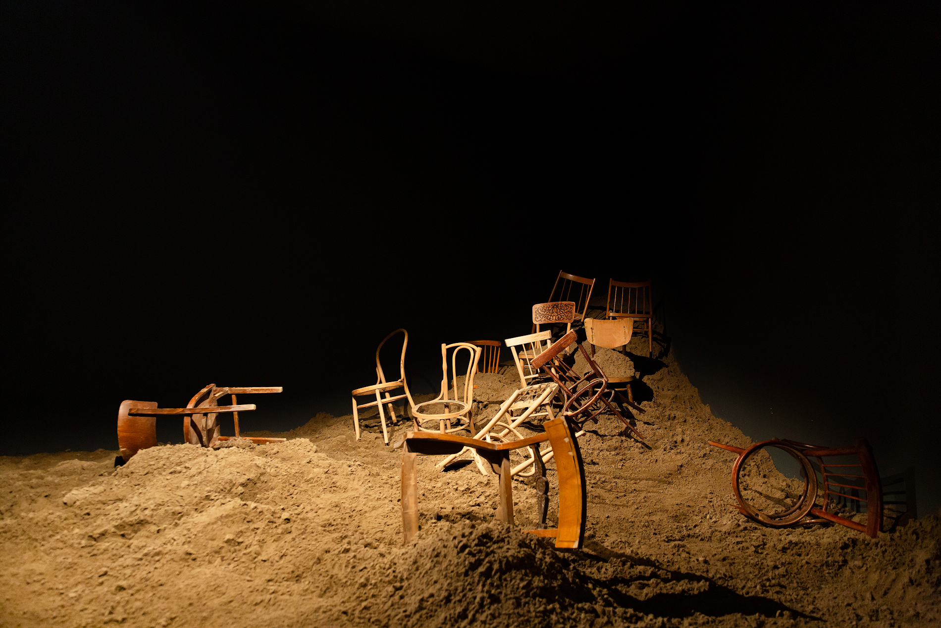 Многие перформансы калининградских художниц связаны с Куршской косой, её песками и лесами; в экспозиции в PERMM есть их инсталляция с полузасыпанными песком старинными стульями — она рассказывает о судьбе поглощённых песками немецких посёлков бывшей Восточной Пруссии; в Перми песок брали камский, попутно художницы с удивлением узнали о затопленных при строительстве Камской ГЭС старинных городках. Так история, переместившись географически, получила новое измерение.