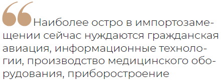 Наиболее остро в импортозамещении сейчас нуждаются гражданская авиация, информационные технологии, производство медицинского оборудования, приборостроение. При этом во всех этих отраслях краевые предприятия не только представлены, но и имеют хорошие конкурентные позиции, считает Лапин.