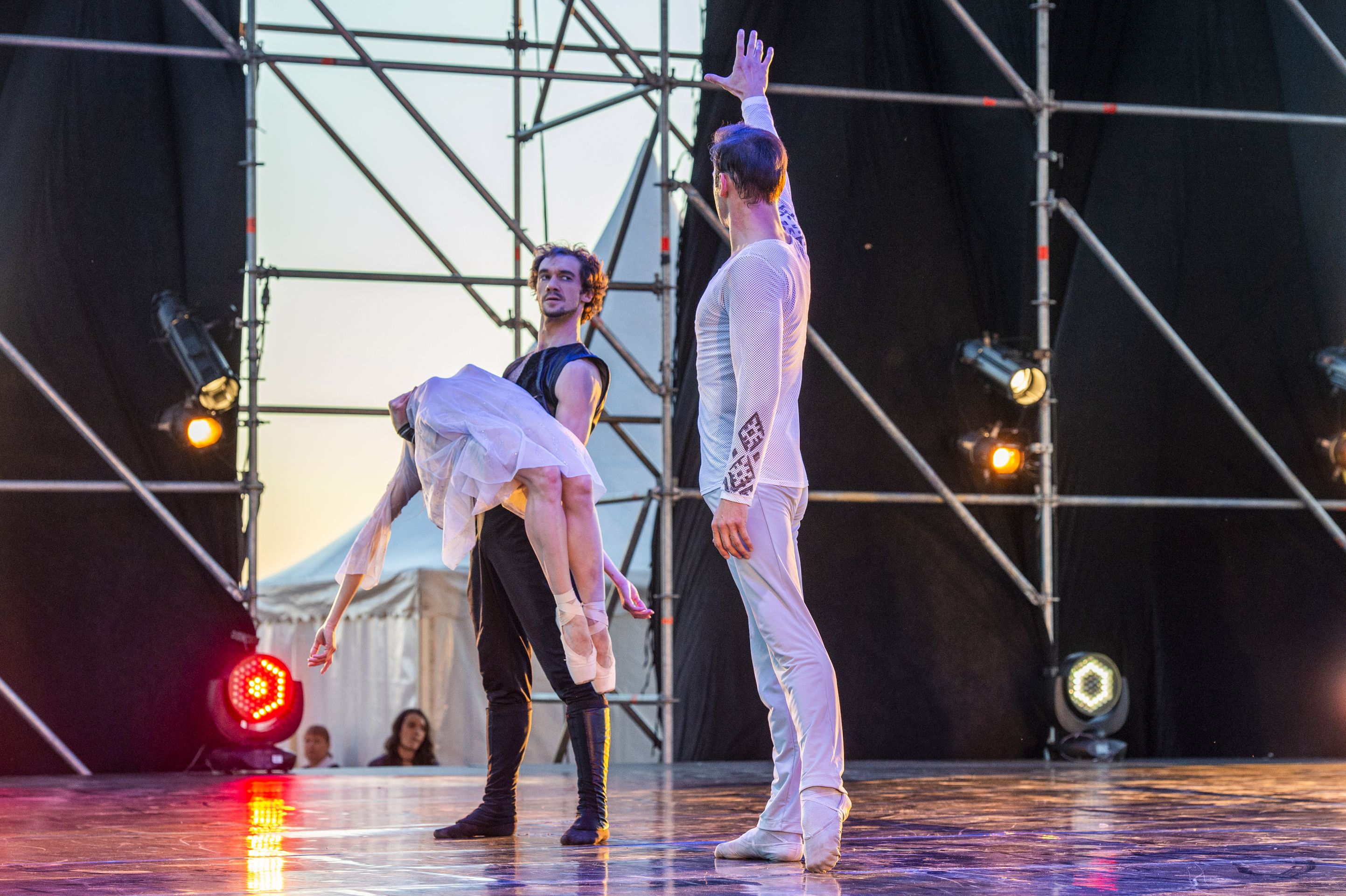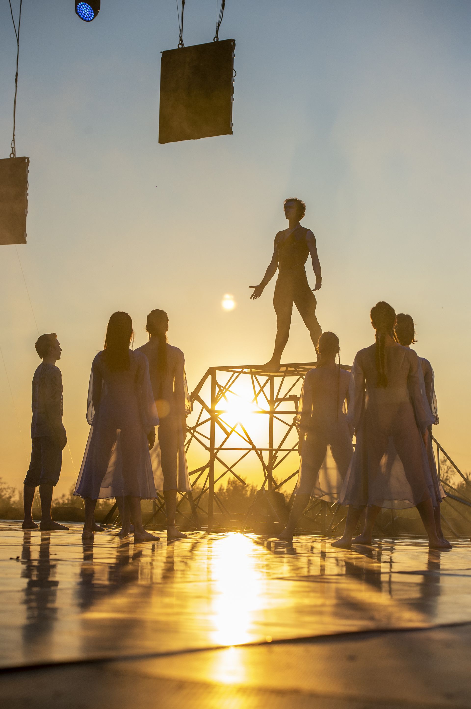 Не холодно, но и не жарко, ни дождя, ни ветра… А главное — изумительный закат, который случился, словно по расписанию, в кульминационный момент спектакля. Небо было золотое, облако, зависшее позади сцены, драматично переливалось серым и розовым, пролетали птицы, шумели деревья… Никакие декорации, никакие видеоэффекты не заменят такого сценического оформления!