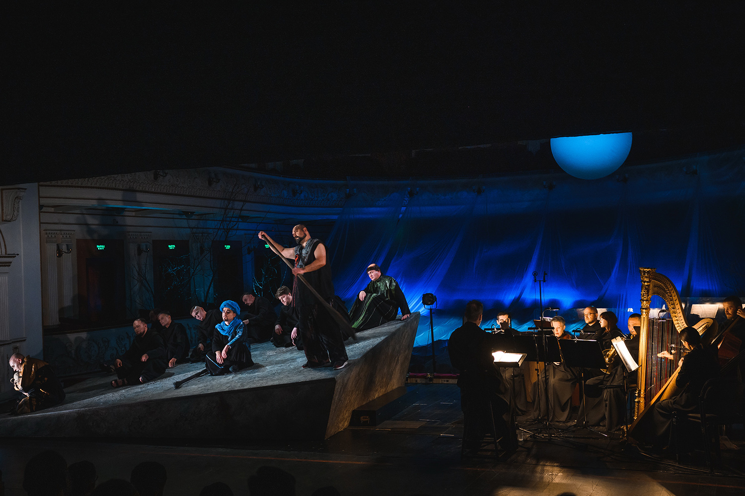 Завсегдатаев музыкальных событий ждало немало интересных открытий: если с пианистом Овиком Григоряном, который здесь играет на органе-позитиве, и с перкуссионистом Константином Грачёвым, у которого непривычно большая для ударника в классической опере партия, меломаны хорошо знакомы, то остальные участники ансамбля — Виталий Беляков (флейта), Азамат Мендыгалиев (валторна), Ксения Поскачёва (арфа), Елена Симонова (альт) и Виталий Мутой (контрабас) — впервые числятся в программке в качестве солистов. Заметно, что Евгений Воробьёв тщательно поработал с ансамблем — придраться не к чему, играют стильно и с пониманием.