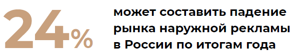 В то же время рекламное агентство OMD OM Group сообщает, что в первом полугодии российский рынок наружной рекламы упал на 18%. По итогам года ожидается падение на 24%, что больше, чем во время пандемии COVID-19.