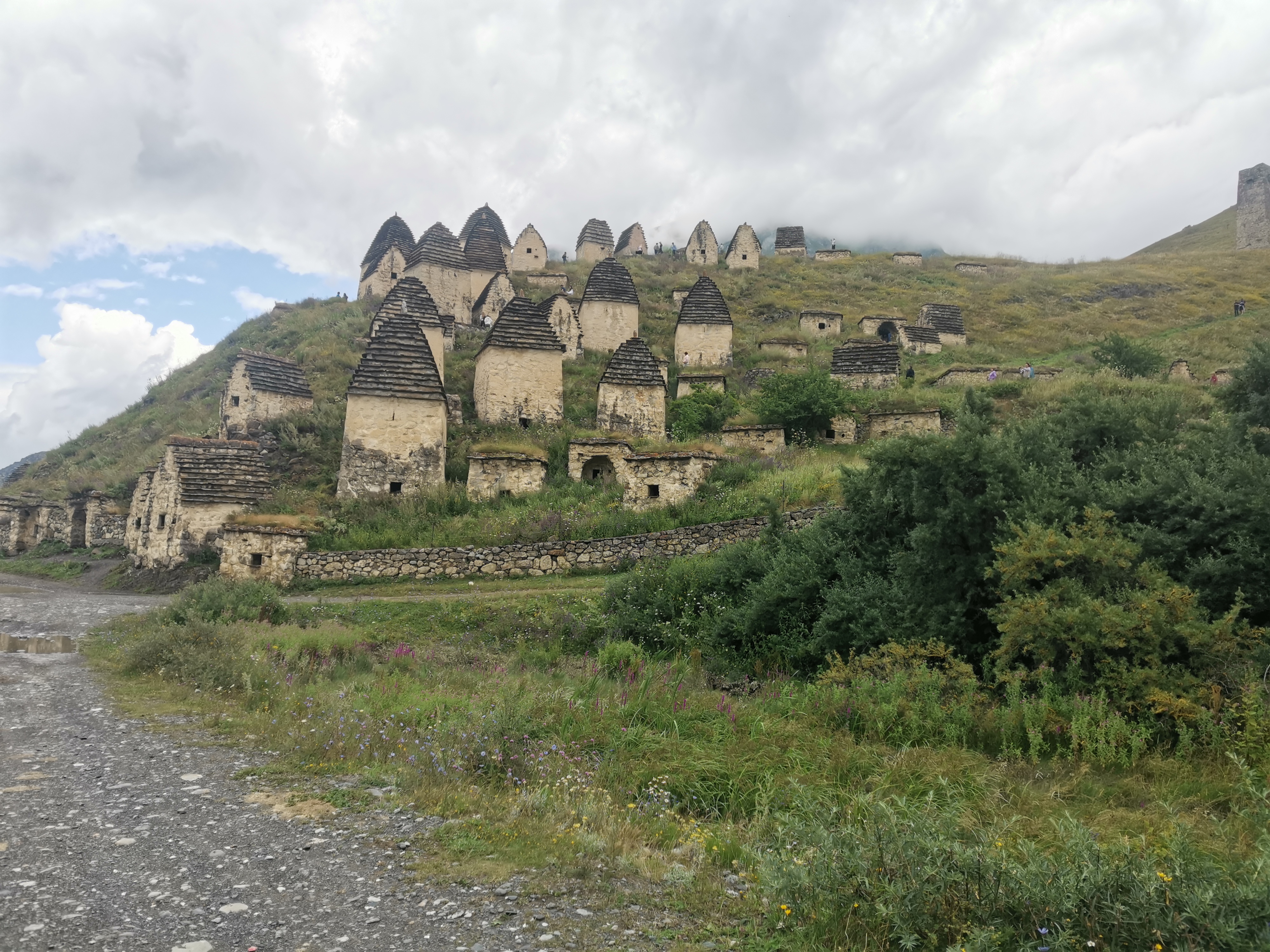 Ещё одно место, активно набирающее популярность, это Город мёртвых. Он расположен в селе Даргавс. Город мёртвых представляет собой комплекс склепов — всего 95 сооружений. Эти склепы стали появляться во время эпидемии чумы на рубеже XVIII и XIX веков. Когда человек заболевал, он уходил «доживать» в фамильный склеп, чтобы не заражать других. После смерти умерших не хоронили привычным способом, а оставляли в склепе, закрыв вход (небольшое отверстие) деревянным щитом. Внутри склепа размещены многоярусные деревянные перекрытия. Когда они были заполнены, тела опускались вниз, тем самым освобождая место для новых погребений. В одном таком склепе могли находиться тела более 100 покойников. Построены эти сооружения хаотично, и достраивались они, так сказать, по мере необходимости.
