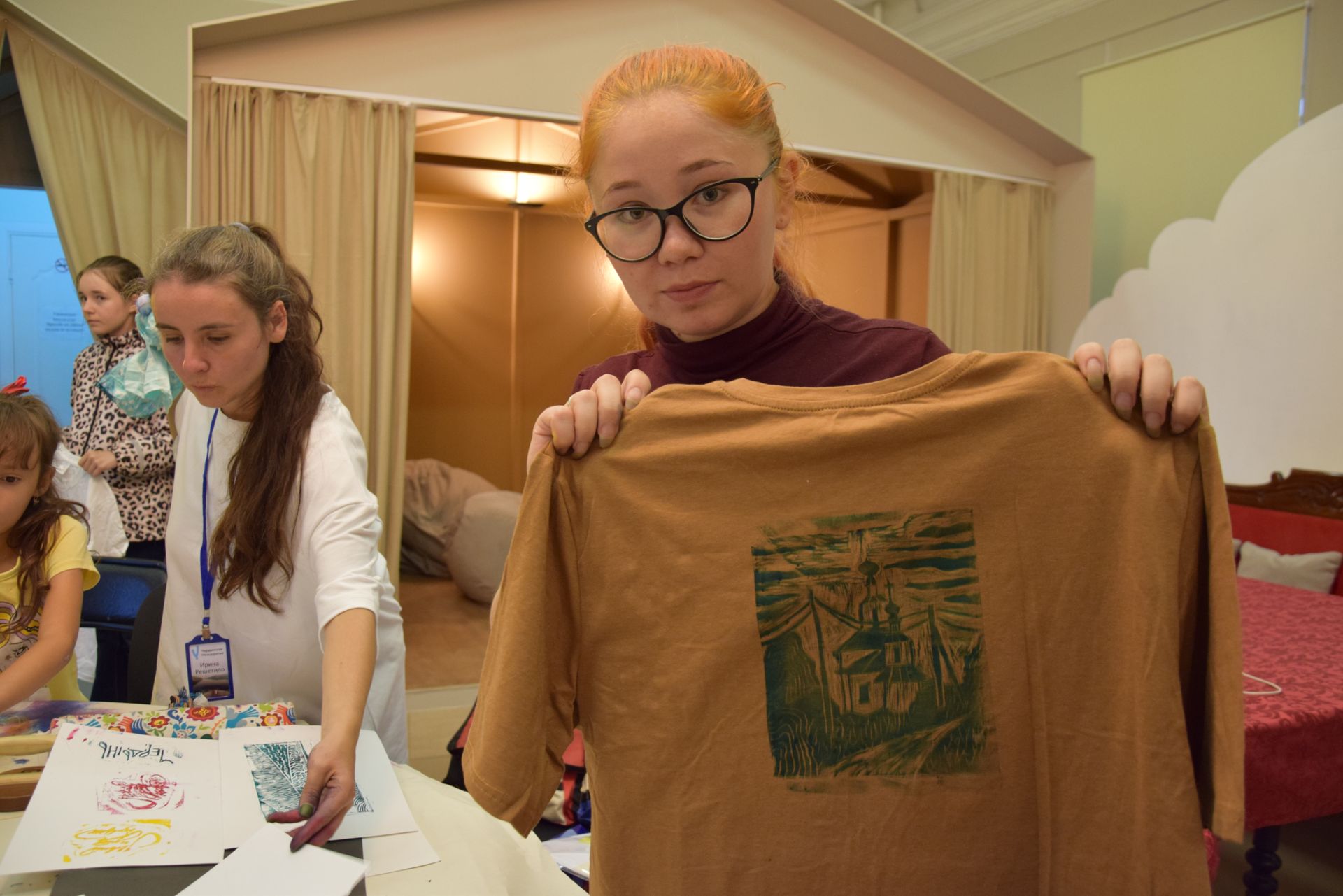 Бывшая пермячка Ирина Решетило, ныне живущая в Сергиевом Посаде, представила выразительную серию линогравюр «Семь холмов» и провела два мастер-класса по изготовлению линогравюры, участие в которых с удовольствием приняли и взрослые, и дети.