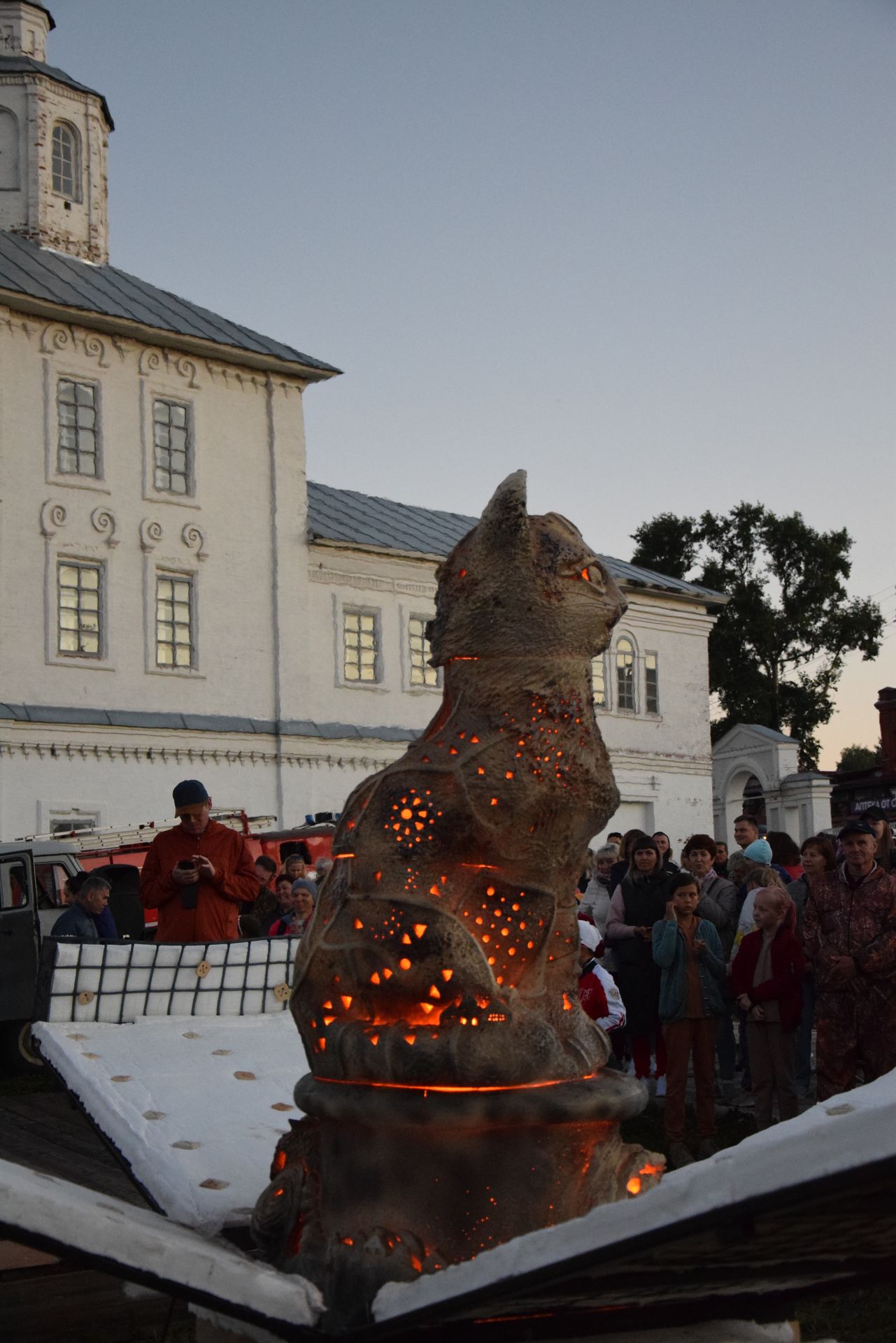 Елена позабавила слушателей рассказом о коте чердынского пароходчика Григория Надымова — Мурашике, который с важностью встречал каждое причаливавшее к местной пристани судно, а рыбаки делились с котом своим уловом. Этот легендарный кот стал героем финального шоу в Комсомольском сквере. Пермские скульпторы-керамисты Марина Еркович и Елена Субботина с командой создали в центре города скульптуру кота, который после длительного обжига появился из огня под яркое выступление участников березниковской файер-студии Asteria.