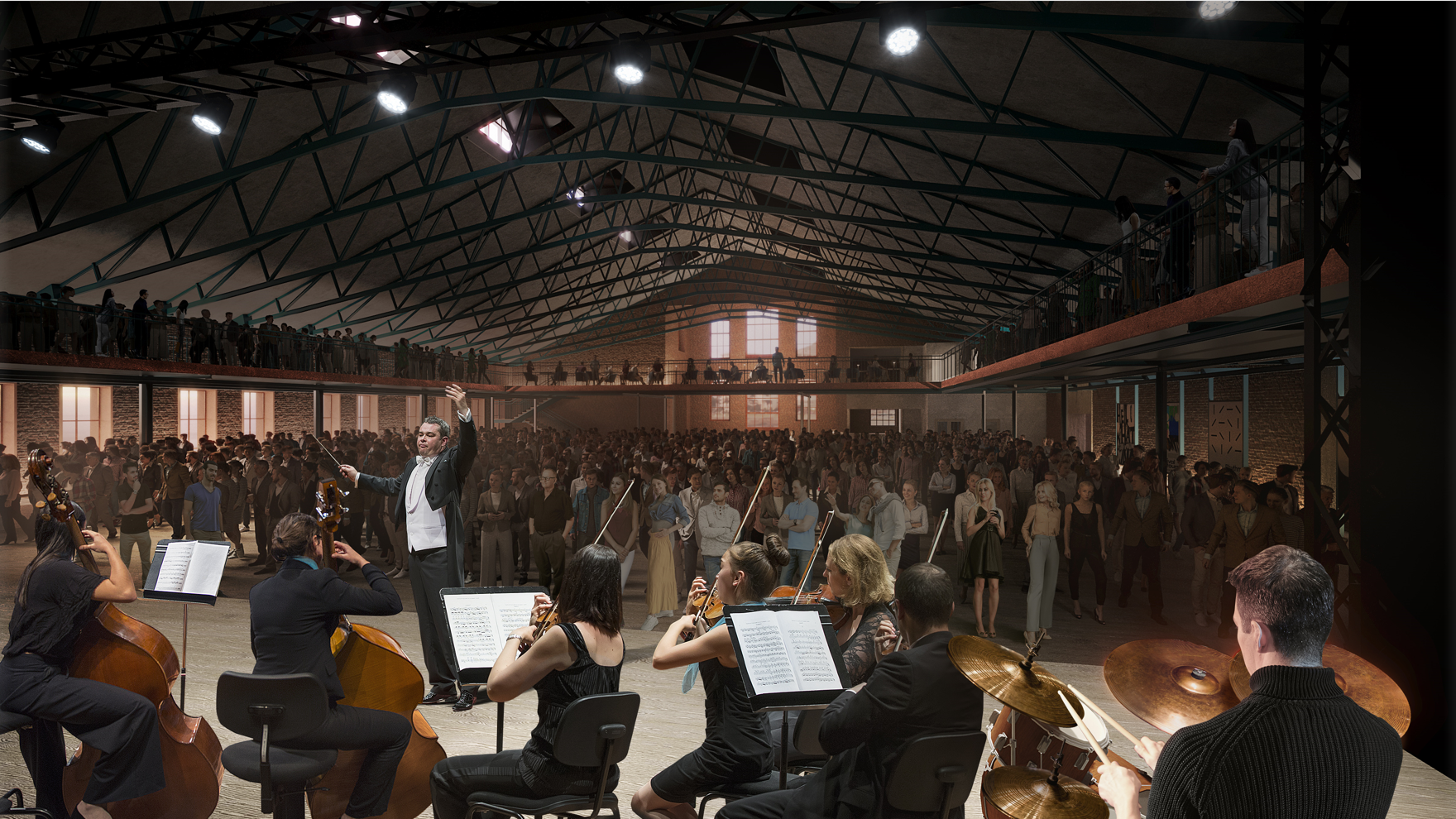 В бывшем цехе №5, как известно, расположится пространство «Пермь перформативная» — большой зал для проведения концертов, спектаклей и презентаций. Как поясняет Анастасия Пелявина, вход в это помещение будет организован со стороны железнодорожных путей, а сцену планируется возвести со стороны заводоуправления, в той стороне зала, которая примыкает к Красной площади. По периметру зала будет организован второй уровень — опоясывающая галерея с дополнительными зрительскими местами. Основной зал будет трансформируемый, с возможностью организации зрительского амфитеатра.