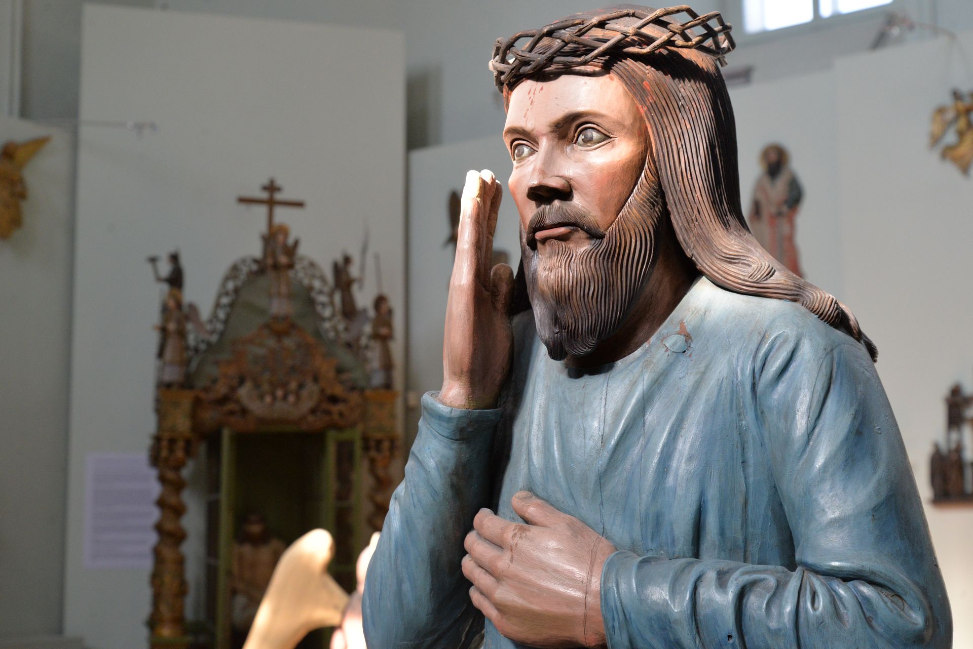 Сразу после европейского Средневековья посетитель оказывается среди икон Северного Прикамья. Некоторые были привезены ещё Серебренниковым, но до сих пор не нашли своего места в постоянной экспозиции, а ведь здесь XVII, XVI, даже XV век! Так, к XV веку относят икону с пророком Илией-пустынником. Вообще, миф об Илье-пророке был чрезвычайно популярен в Прикамье, поскольку корреспондировал с коми-пермяцким мифом о Войпеле. На одной из икон Илья возносится на колеснице в окружении красного — «огненного» — шара, и если все фигуры на иконе выписаны с редкой тщательностью, то колесница внутри шара лишь намечена штрихами. «Правда жизни! — говорит Ольга Старцева. — Огонь затмевает то, что внутри».