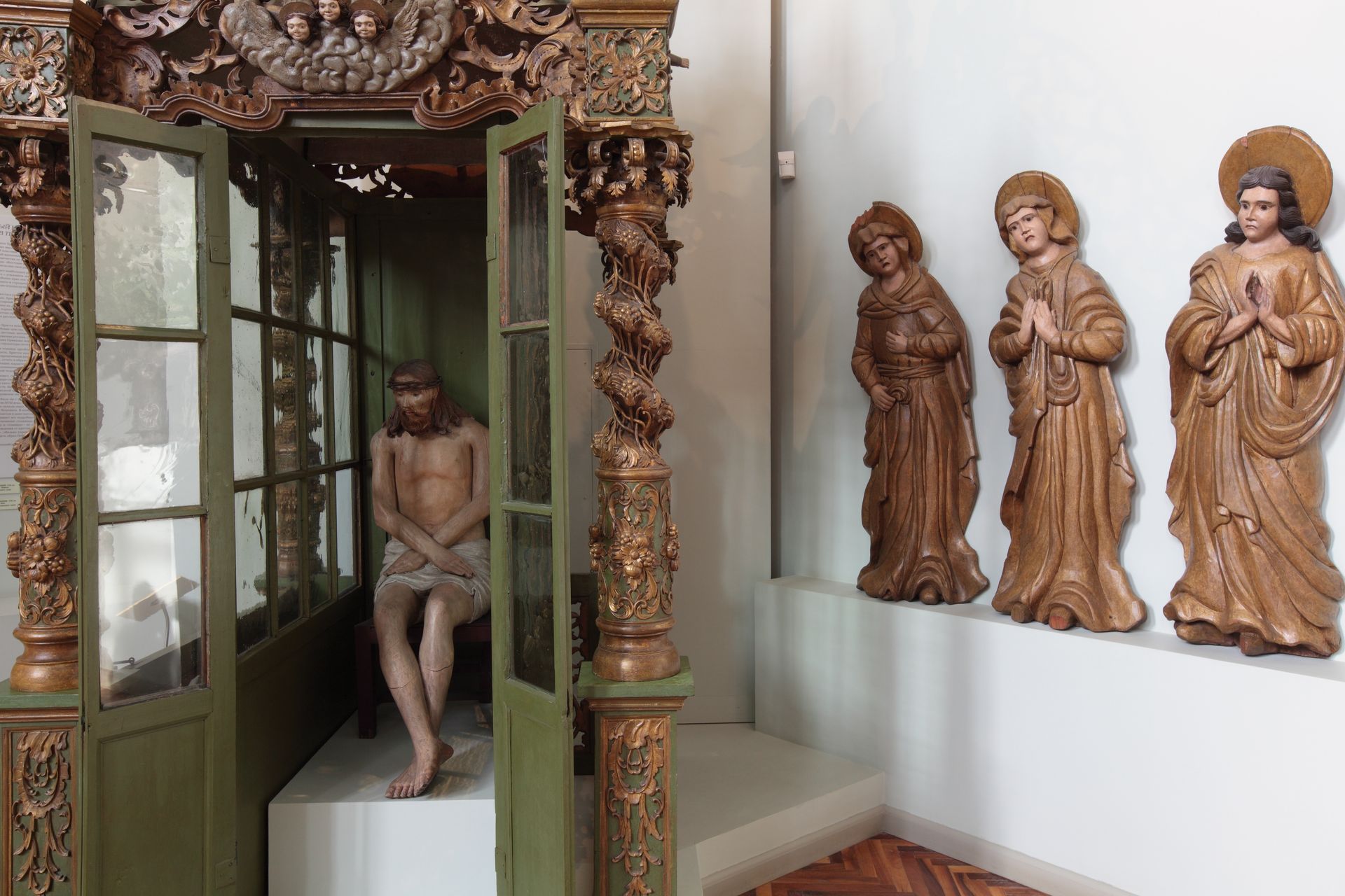 Сразу после знакомства с историей музея посетитель оказывается в пространстве античности, Средневековья и европейского барокко. Краснофигурные и чернофигурные вазы, римское стекло, египетские миниатюры — скарабеи, статуэтки Осириса, ушебти, а также гобелены, деревянные барельефы — оказывается, в Пермской галерее есть не только пермская, но и европейская деревянная скульптура.