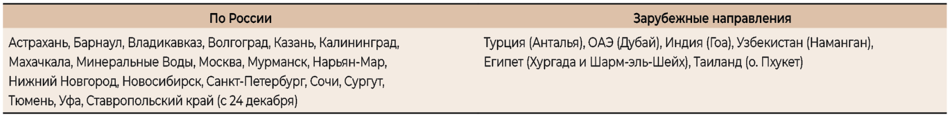 Что касается внутренних рейсов, то в зимнем расписании сохранены все направления, которые были в летний период.