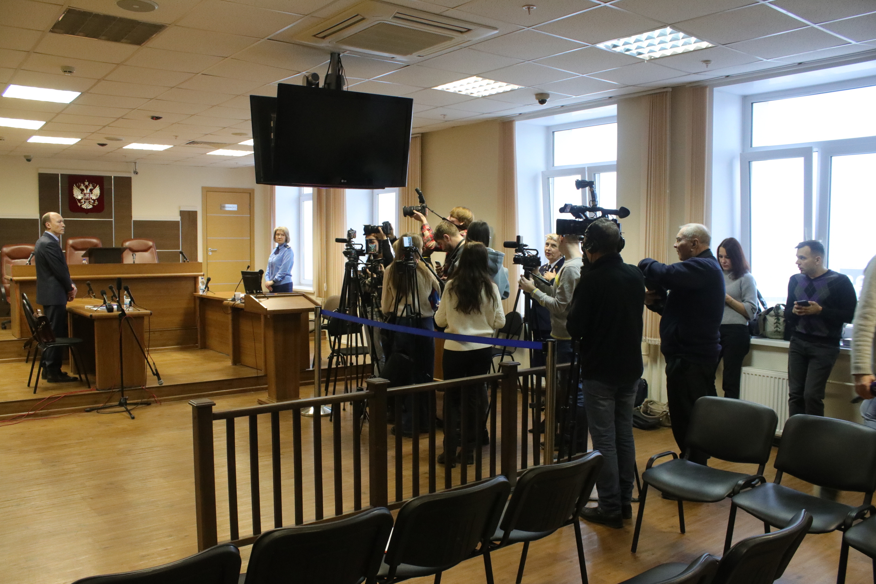 Регламент в суде для журналистов строгий: во время оглашения нельзя передвигаться по залу и даже менять объективы на фотоаппаратах.