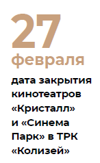 С 27 февраля также прекратит свою работу и кинотеатр «Синема Парк» в ТРК «Колизей».