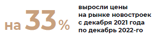 С начала спецоперации на Украине, то есть с конца февраля и начала марта 2022 года, за 10 месяцев цены на рынке новостроек выросли на 15—17%, а за год, с декабря 2021 года по декабрь 2022-го, — на 33%. Прирост цен в рублях за 1 кв. м составил в среднем по городу 35 000 рублей.
