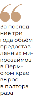 По данным Пермского отделения ЦБ РФ, в регионе портфель микрофинансовых компаний по итогам девяти месяцев 2022 года вырос на 33,3% — до 1,5 млрд руб. За тот же период объём предоставленных микрозаймов вырос на 43% и составил почти 1,5 млрд руб. А в целом за последние три года объём предоставленных микрозаймов вырос в полтора раза.
