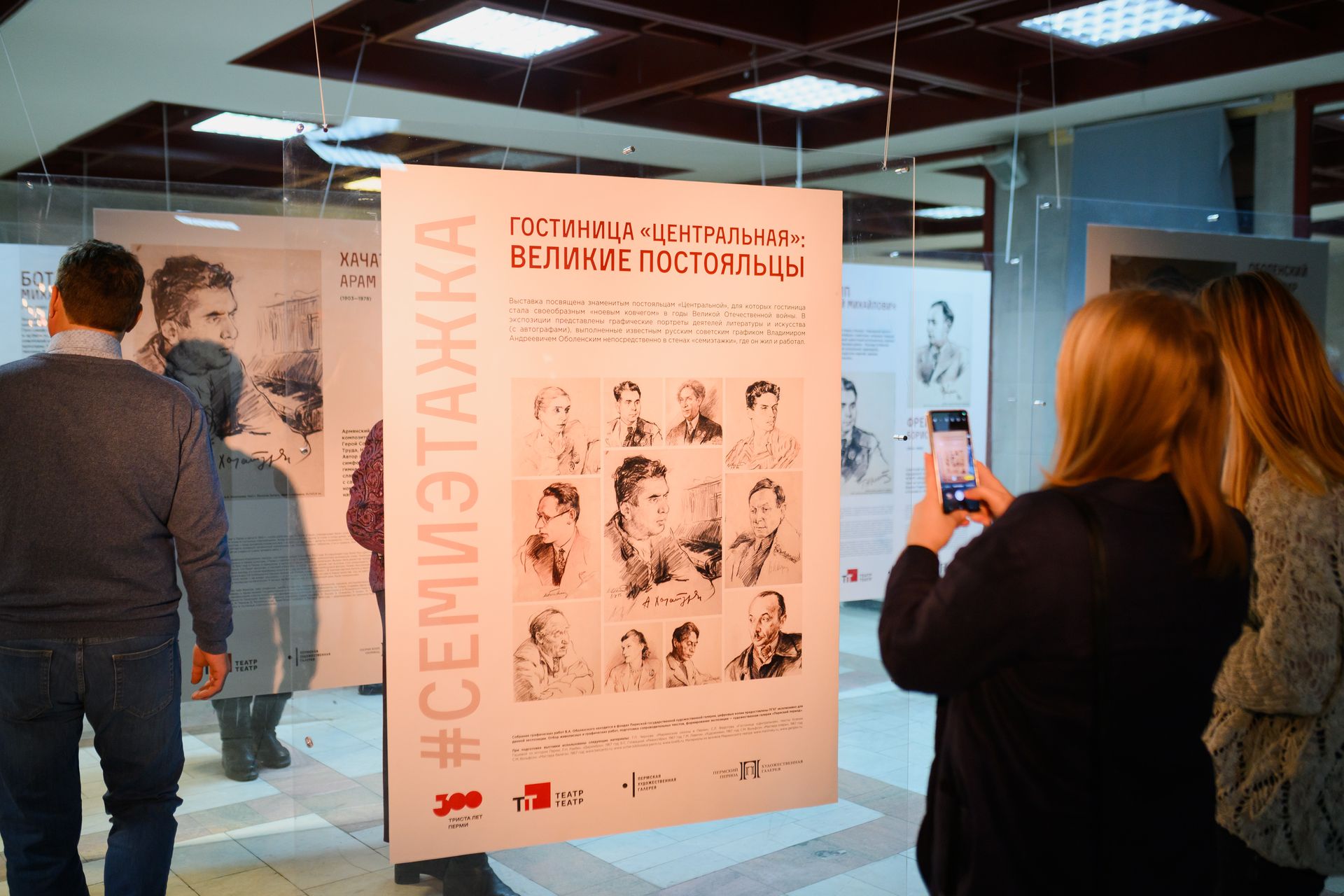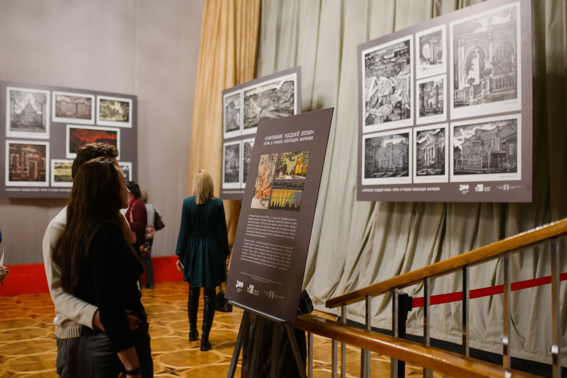 Спектакль довольно длинный — почти три часа, и идёт, разумеется, с перерывом, во время которого можно посмотреть аж четыре выставки в театральных фойе: здесь и рассказ о знаменитых постояльцах «Семиэтажки», и графика пермских художников. У ветерана, народного художника Александра Зырянова можно увидеть офорты с изображением поэтичной Перми 1960-х годов, а у представителя нынешнего активного творческого поколения Владислава Дёгтева выставлена знаменитая серия монотипий 2012 года, изображающих фантастическую Пермь из какой-то параллельной Вселенной. Особая экспозиция состоит из театральных эскизов Татьяны Бруни — ленинградской художницы, которая, находясь в эвакуации в Молотове, стала автором декораций и костюмов к балету «Гаянэ».