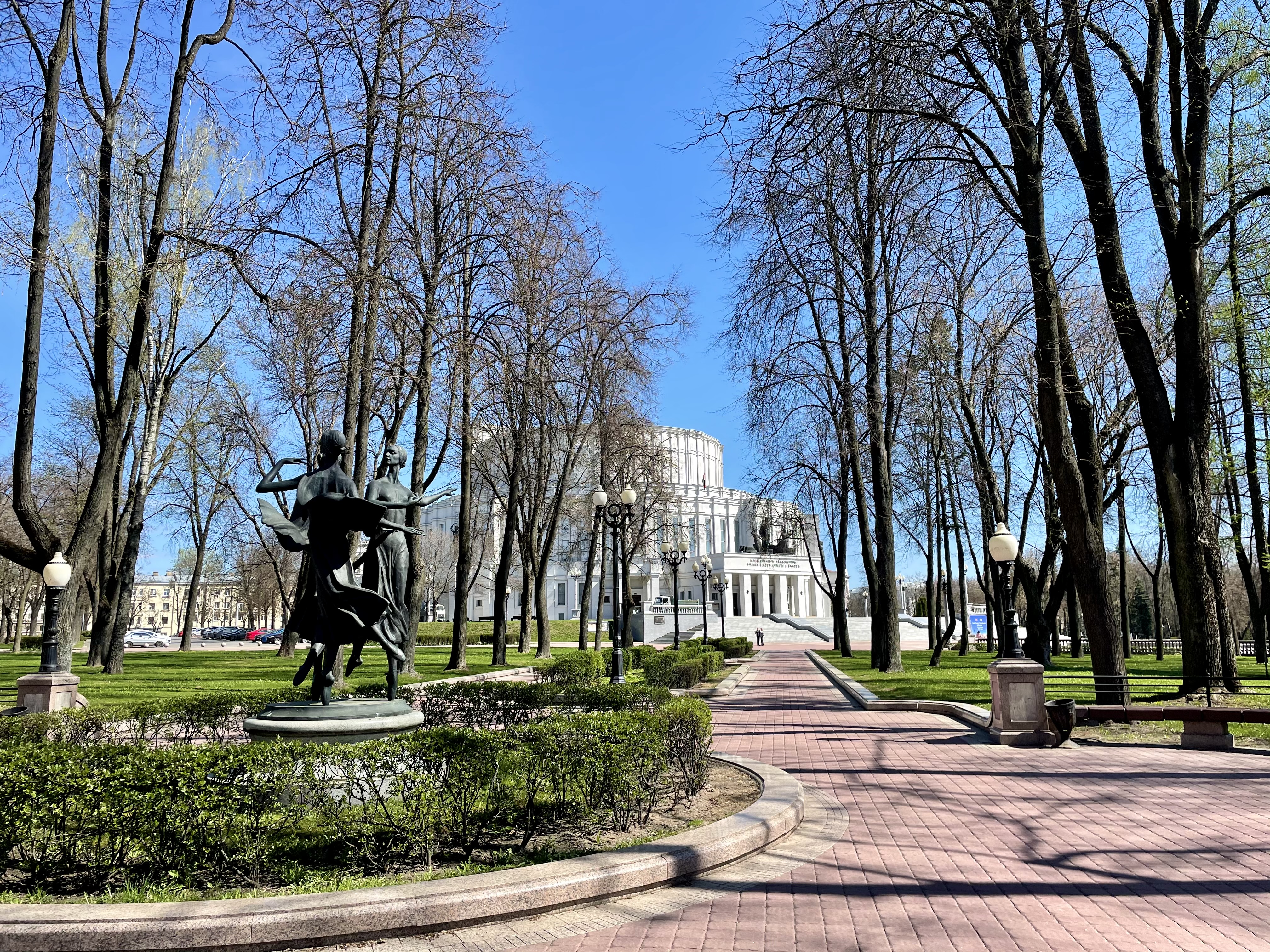 Недалеко отсюда находится Театр оперы и балета, являющийся памятником советского конструктивизма. Пермским театралам здесь должно понравиться. И опять же — вокруг театра раскинулся сад. Большое число парков и скверов — отличительная черта Минска.