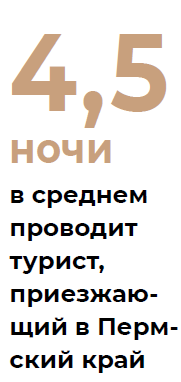 В региональном министерстве туризма отмечают, что в 2022 году также увеличилась и достигла рекордных значений длительность турпоездок по Пермскому краю. В среднем один турист теперь в поездке по Пермскому краю проводит 4,5 ночи, тогда как, к примеру, в Татарстане это значение составляет 3,2 ночи, а в среднем по ПФО — 4,0.
