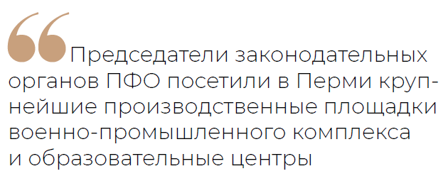 В рамках встречи председатели законодательных органов ПФО посетили в Перми крупнейшие производственные площадки военно-промышленного комплекса и образовательные центры Пермского края.