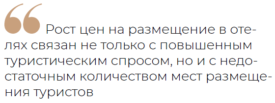 По мнению Елены Шперкиной, рост цен на размещение в отелях связан не только с повышенным туристическим спросом, но и с недостаточным количеством мест размещения туристов, так что «два строящихся отеля очень оздоровят ценовую политику пермских отелей!», считает специалист.
